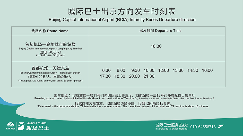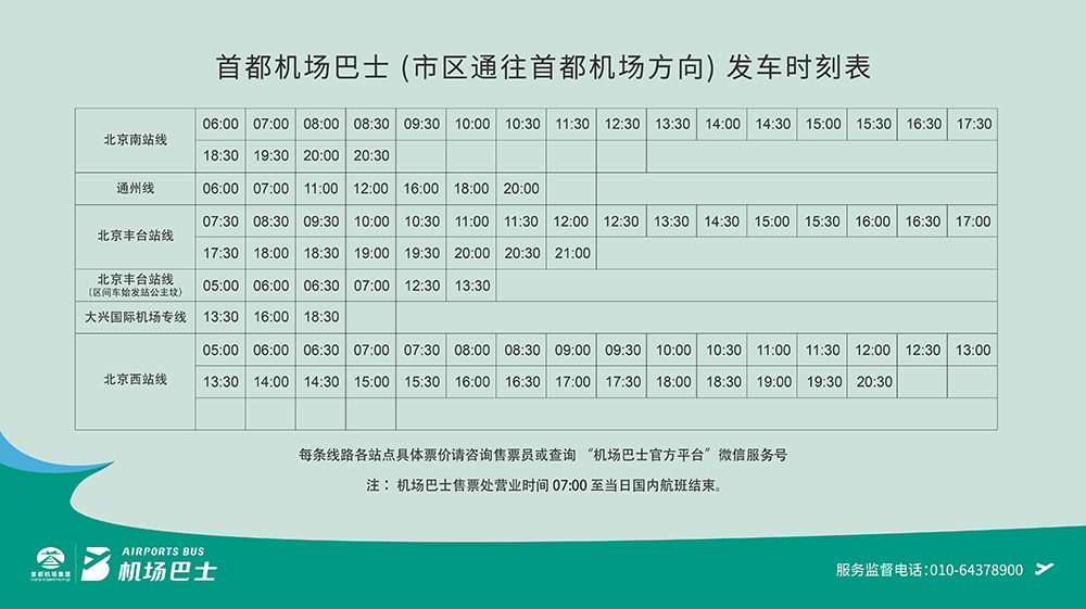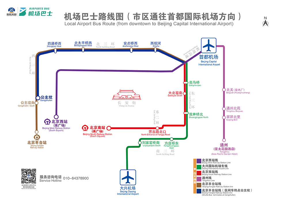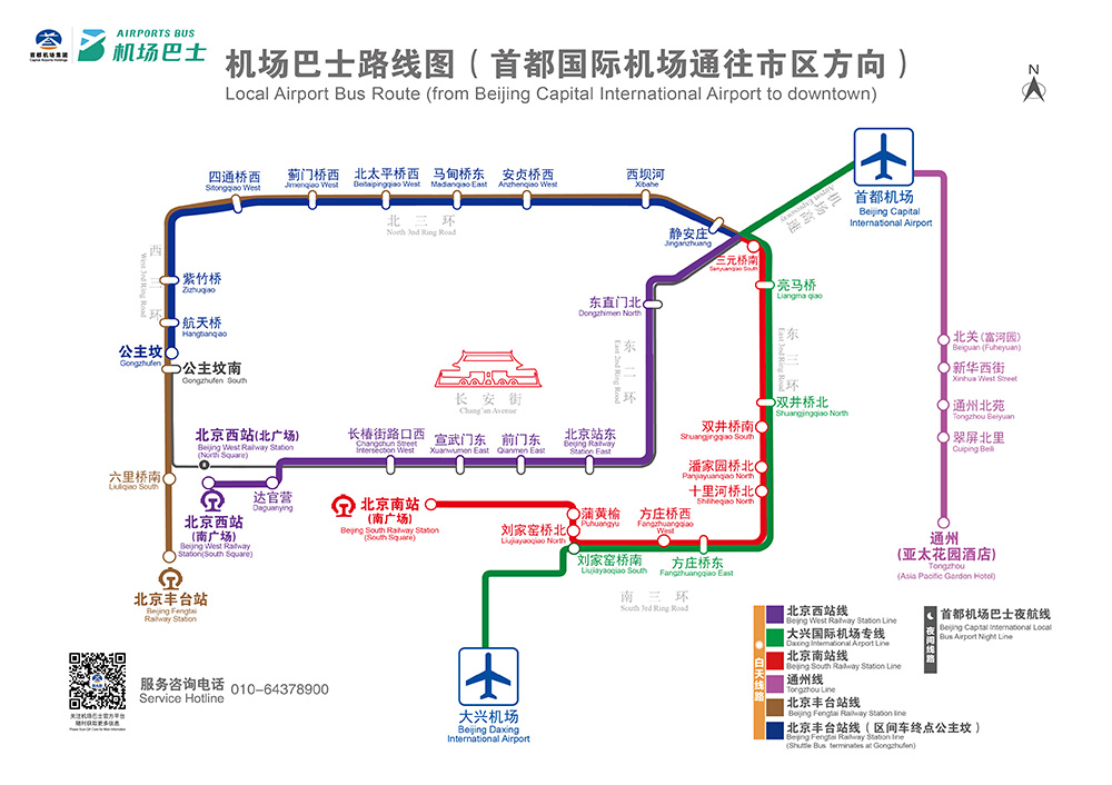 市區(qū)旅客可方便乘坐市內(nèi)機(jī)場(chǎng)巴士往返首都機(jī)場(chǎng)與公主墳、北京西站、通州、北京南站、北京豐臺(tái)火車站、大興機(jī)場(chǎng)等地。