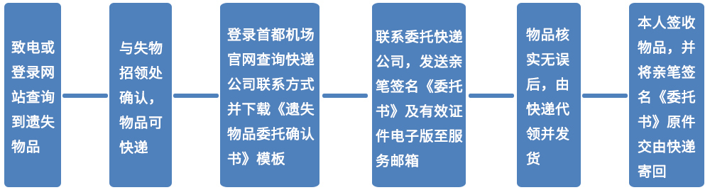 為了方便失主及時(shí)領(lǐng)取遺失物品,首都機(jī)場(chǎng)失物招領(lǐng)處推出委托快遞代領(lǐng)遺失物品服務(wù)。如您及親友不便前往失物招領(lǐng)處領(lǐng)取遺失物品,可選擇委托快遞公司代為領(lǐng)取的方式。