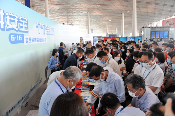 今年6月是第22個全國“安全生產(chǎn)月”,主題為“人人講安全、個個會應(yīng)急”。6月16日,全國“安全宣傳咨詢?nèi)铡碑?dāng)天,首都機(jī)場為進(jìn)一步增強(qiáng)公眾安全意識,營造濃厚的安全氛圍,圍繞“安全生產(chǎn)月”主題,在航站樓、飛行區(qū)組織開展了“安全宣傳咨詢?nèi)铡被顒?,集中宣傳安全生產(chǎn)方針政策、法律法規(guī)、民航安全規(guī)章和安全生產(chǎn)知識,回答群眾關(guān)心的民用航空安全問題。