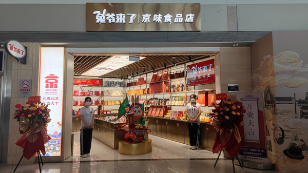 為更好推廣“禮贊國門”服務(wù)產(chǎn)品,近日,以“兔爺來了”命名的京味食品店亮相首都機(jī)場3號航站樓四層出發(fā)層?xùn)|側(cè),主要經(jīng)營京味特色食品,相關(guān)產(chǎn)品包含張一元、御食園、御茶膳房、天福號等多個知名品牌。